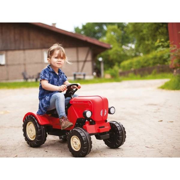 Der Porsche Diesel-Junior von BIG verfügt über einen Staub- und Schmutzgeschützten Präzisionskettenantrieb, hochwertige und stufenlose BIG-Achsschenkellenkung, einen verstellbaren Sitz sowie zwei Anhängerkupplungen. Die knuffige Motorhaube und die seitlichen Scheinwerfer sowie die Kotflügel machen den kleinen Traktor zum spielerischen Highlight.Art.-Nr.: 1195335