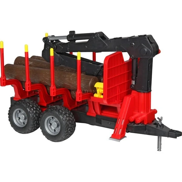 | Inhalt/Ausstattung | Fahrzeugaufbau: Anhängekupplung hinten, der äußere Kranarm kann rastend bis in seine Endlage herausgezogen bzw. wieder eingeschoben werden, Kranaufbau um 360° drehbar, Ladekran-Greifer zum Be- und Entladen; Fahrwerk: geländegängige Pendelachse, Profilreifen; 4 Baumstämme im Lieferumfang enthalten | ||