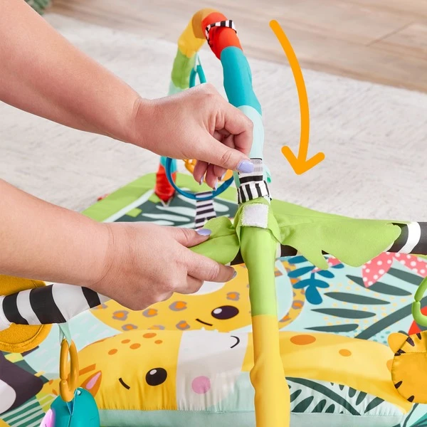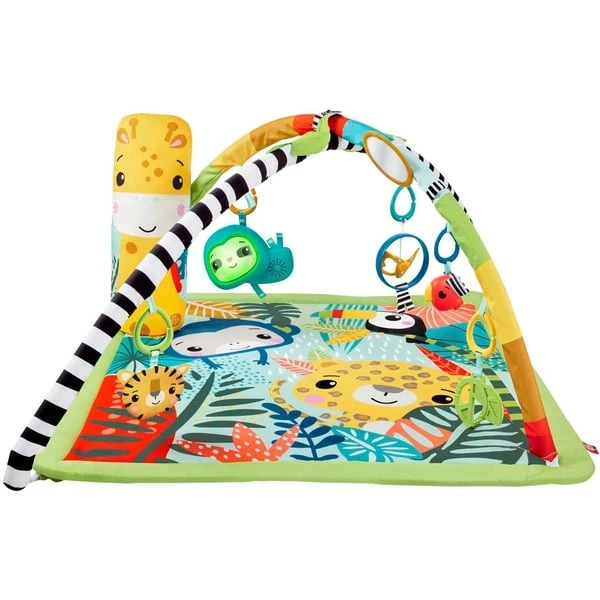 Die Fisher-Price 3-in-1 Rainforest Spieldecke bietet Babys, Neugeborenen und sogar Kleinkindern wilde sensorische Erlebnisse. Neugeborene können sich auf die weiche Spielmatte legen, während über ihnen sechs Spielzeuge an den Bögen hängen. Für das Spielen in der Bauchlage kann der anpassbare Bogen nach unten gleiten, um das Spielzeug in Reichweite des Babys zu bringen, während das Giraffen-Spielkissen das Baby beim Spielen stützt. Außerdem bietet das Faultier mit bis zu 20 Minuten Musik und Lichtern spannenden Spielspaß beim Spielen in der Bauchlage über das Spielen im Sitzen bis hin zu Spielspaß unterwegs.Art.-Nr.: 1888524