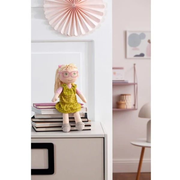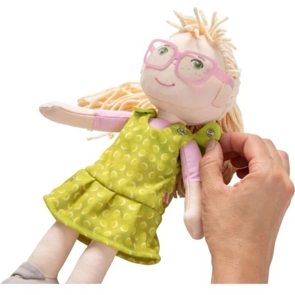 Puppen von HABA sind tolle Gefährten für Kinder. Sie haben fröhliche Gesichter, weiche, wattierte Körper und kuschelige Haare. Spielen, kuscheln, trösten oder Abenteuer erleben – mit diesen Puppen ist vieles möglich. Bei der großen Auswahl an Charakteren ist für jedes Kind der passende Spielgefährte dabei. Leonores Erkennungszeichen sind das lange, blonde Haar und die pinke Brille. Praktisch: Ihre Kleidung ist dank Klettverschluss ruckzuck aus- und ebenso schnell wieder angezogen.Art.-Nr.: 1913232