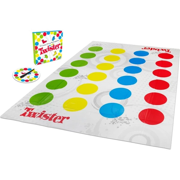 Das bekannte Verrenkungsspiel mit Verknotungsgefahr in neuem Design. Die Drehscheibe gibt wie gewohnt die Position auf der Matte vor. Aber Achtung, zwei neue Elemente auf der Drehscheibe sorgen für einen noch größeren Verknotungsspaß. Der Spieler, der mit den Händen oder Füßen den Kontakt zur Matte verliert, scheidet aus. Art.-Nr.: 1189549
