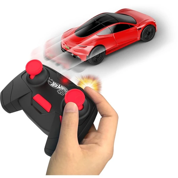 Mit dem Hot Wheels R/C-Tesla Roadster haben Kinder und erwachsene Sammler die ultimative Kontrolle über ferngesteuerte und lebensechte Hot Wheels Action. Dieses voll funktionsfähige Hot Wheels R/C Fahrzeug im Maßstab 1:64 wartet mit unglaublich authentischen Details und modernstem Design auf – genau wie ein echter Tesla. Er kann auf dem bekannten orangefarbenen Hot Wheels Track (separat erhältlich) oder abseits der Piste gefahren werden für unbegrenzten Spielspaß in der offenen Welt. Zudem ist im Lieferumfang ein Track-Adapter enthalten, um den Übergang von beliebigen Oberflächen zu erleichtern. Der Turbo-Beschleunigungsknopf auf der Fernbedienung sorgt für zusätzliches Tempo für außergewöhnliche Stunts.Art.-Nr.: 1888562