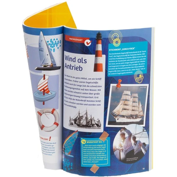 | Inhalt/Ausstattung | Reagenzgläser und Stopfen, Messbecher, pH-Teststreifen, Pipetten, Pinzette, Glühlämpchen, Kunststoffrohr, Filztuch, Steckfedern, Batteriefach, Kabel, Elektromotor, Taster, LED, Achse, Zahnrad, Schnur, Kunststoffboot mit Zubehör, Knete und vieles mehr | ||