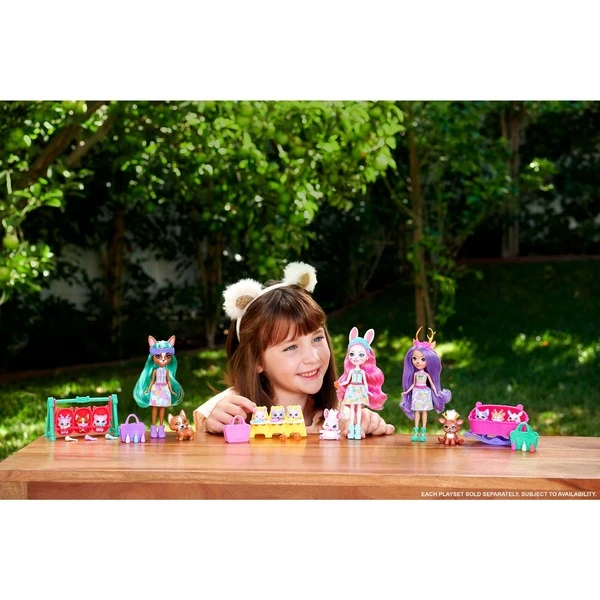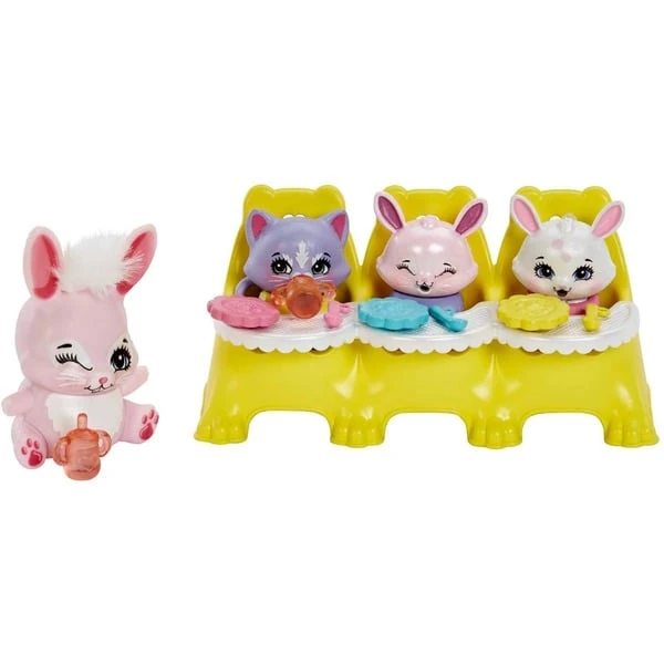 In der Enchantimals Baby Best Friends-Sammlung bietet jedes Set viel Spaß mit fünf Figuren und jeder Menge Zubehör. Jede Box enthält eine liebenswerte, etwa 15 cm große Enchantimals-Puppe mit lustiger Frisur und witziger Bekleidung, ihren großen Tierfreund und einen Baum voller farbenfroher Blätter und Blüten. Werden die Blätter und Blüten geöffnet, kommen drei Baby Best Friends und neun Baby-Zubehörteile zum Vorschein. Die Zubehörteile passen zu jedem Baby Best Friend und können beliebig zu noch mehr Spielmöglichkeiten kombiniert werden. Auch Babytragesitz und Wickeltasche sind enthalten.Art.-Nr.: 1888506