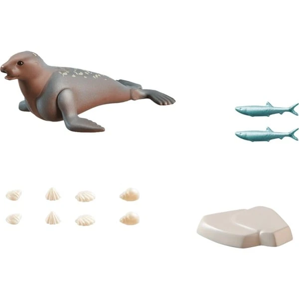 Die Wiltopia-Spielwelt von PLAYMOBIL lädt Kinder dazu ein, spannende und schützenswerte Regionen unserer Welt und ihre zahlreichen tierischen Bewohner zu entdecken und verbindet Spielen und Lernen auf einzigartige Weise. Der mächtige Seelöwe thront auf einem flachen Felsen. Mit dabei sind außerdem zwei Fische und Muscheln.