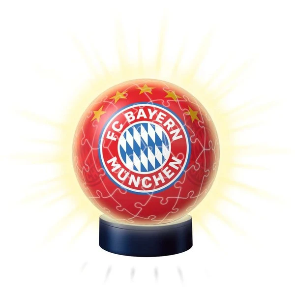 Dieser 3D Puzzle-Ball bringt nicht nur die Augen wahrer FC Bayern Fans zum leuchten: Mit einem Händeklatschen wird er zum faszinierenden Nachtlicht, wenn der Leuchtsockel den Ball von innen erstrahlen lässt. Dank der Easyclick-Technologie passen alle Kunststoff-Puzzleteile perfekt ineinander und formen eine stabile Kugel, ganz ohne Kleben. Die Numerierung der Teile erleichtert das Vorsortieren und ermöglicht einfaches Puzzeln nach Zahlen. Mit dem beiliegenden Leuchtsockel lassen sich viele weitere Motive in ein tolles Nachtlicht verwandeln.Art.-Nr.: 1356206