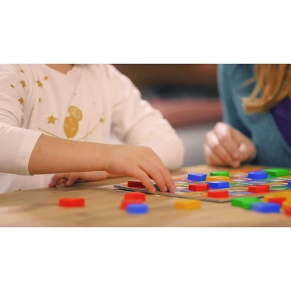 Rote Kreise, gelbe Vierecke, blaue Dreiecke – ein kunterbuntes Durcheinander! Die Würfel zeigen ein Viereck und die Farbe Blau: Wer findet ein blaues Viereck? Wo ist ein passendes Feld auf dem Spielplan? Hier kommt der Spielstein hinein. Wer zuerst alle Spielsteine auf dem Plan untergebracht hat, gewinnt das Spiel.Art.-Nr.: 1405183