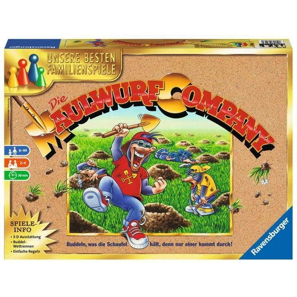 Alle versuchen, möglichst viele eigene Maulwürfe durch die vier Buddel-Schichten zu bringen. Unten wartet die Belohnung: die „Goldene Schaufel“! Doch Achtung: Nur wer rechtzeitig ein Buddel-Loch erreicht, bleibt im Rennen, die anderen fliegen raus. Und zum Schluss steht fest: Nur einer kommt durch!Art.-Nr.: 1217319