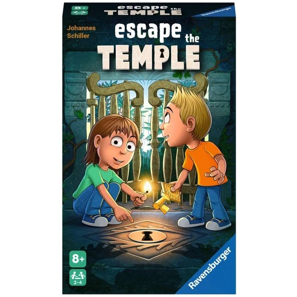 Oh Schreck! Gefangen im dunklen Tempel hören die Forscher seltsame Geräusche – und werden ständig von einem wilden Affen verfolgt! Unter den Tempelplatten verbergen sich geheime Gänge – aber auch Fallen, aus denen es sich zu befreien gilt. Finden sie die Schlüssel und können gemeinsam aus dem Abenteuer entfliehen? Die vier Forscher bewegen sich im Inneren des Tempels vorwärts. Eine Drehscheibe gibt an, wie weit sie gehen dürfen. Verdeckte Tempelplatten werden im Ziel-Raum umgedreht und es ist spannend, was sich darunter verbirgt. Ist es ein Schlüssel, an dessen Symbol man sich später erinnern soll? Oder tappt man in eine Falle? Bei jedem Zug bewegt sich der wilde Affenwächter vorwärts, immer in Richtung des am nächsten stehenden Forschers. Erwischt er einen Forscher, fällt dieser vor Schreck um. Gut, wenn er einen magischer Zaubertrank besitzt. Leitern zum Befreien aus Fallen und Streichhölzer zur Beleuchtung helfen den Spielern, den Tempel zu durchforschen und alle Schlüssel zu finden. Werden es alle Forscher gemeinsam schaffen, an unterschiedliche Türen zu gelangen und dann noch genau zu wissen, wo sich ihr passender Schlüssel befindet?Art.-Nr.: 1894558