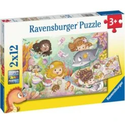 Die farbenfrohen Motive dieses Puzzlesets aus 2x 12 Teilen begeistern Kinder ab 3 Jahren. Mit dabei sind Mini-Poster als Vorlagen. Die Teile in altersgerechter Größe sind hochwertig verarbeitet, was langlebigen Puzzlespaß verspricht. Dieses Set enthält zwei Puzzles mit lustigen Meerjungfrau-Motiven.Art.-Nr.: 1894857
