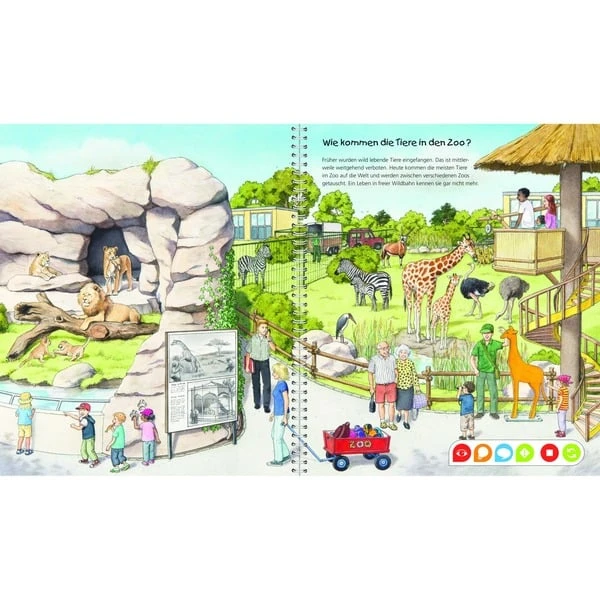 Alle Kinder gehen gern in den Zoo. Sie lieben es, Tiere zu beobachten und haben viele Fragen: Wie kommen die Tiere in den Zoo? Was fressen sie? Und wie viel Platz brauchen sie? Bei einem Spaziergang durch Gehege, Tierhäuser und ein großes Aquarium lernen Kinder unzählige Tierarten sowie Berufe wie Tierpfleger, Zoodirektor, Tierarzt und Techniker kennen. Dabei sensibilisiert das Buch auch für eine artgerechte Haltung.Art.-Nr.: 1607203