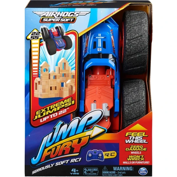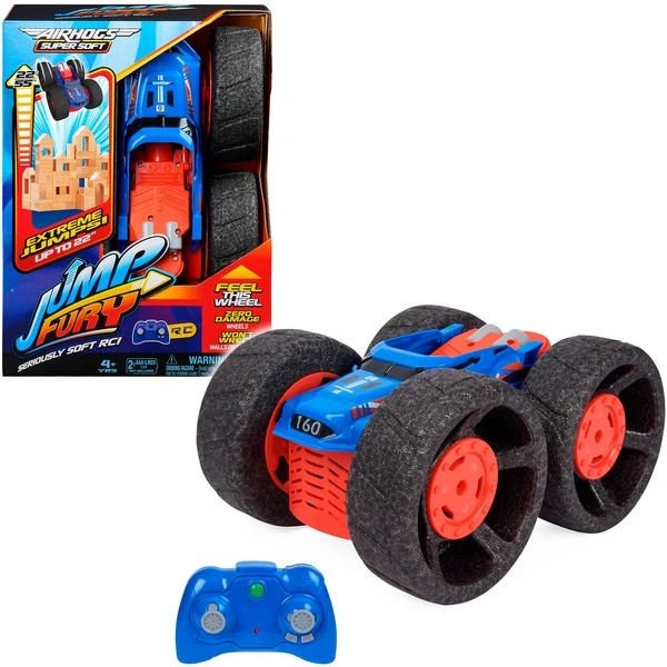 Für den Air Hogs Jump Fury ist kein Hindernis zu hoch! Das ferngesteuerte Fahrzeug ist nämlich nicht nur für Renn-Action am Boden geeignet, sondern meistert auch Sprünge bis zu 55 cm. Damit ist auf Sprung auf den Couchtisch oder das Sofa kein Problem. Aber Achtung, nicht dass die Großmutter einen Herzinfarkt kriegt. Um sicher zu gehen, dass im Haushalt nichts kaputt geht, ist der Jump Fury mit innovativen Performance-Rädern ausgestattet, die keine Kratzer hinterlassen und extra-weich sind. Coole 360-Grad-Drehungen, Überschläge, Sprünge vom Treppenabsatz und dann wieder ein Sprung. Einfach die integrierte Sprungfeder aufladen und aus dem Stand oder der Fahrt in die Höhe katapultieren lassen. Mit der 2,4 GHz-Fernsteuerung lässt sich der Jump Fury aus einer Reichweite von bis zu 30 Metern steuern und durch seine Funktionen bietet er Spaß für Groß und Klein. Auf die Plätze, fertig, Jump!Art.-Nr.: 1756562