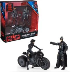 | Inhalt/Ausstattung | 1x „The Batman“ 10 cm Batman-Actionfigur, 1x „The Batman“ 10 cm Selina Kyle-Actionfigur mit Motorradhelm, 1x „The Batman“ Selina Kye-Bike (kompatibel mit 10 cm Figuren) | ||
