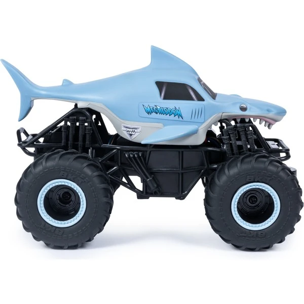 Den imposanten Monster Jam Megalodon Truck zuhause erleben! Und zwar zum ersten mal mit einer Fernsteuerung. Man lässt ihn verrückte Stunts mit selbstgebauten Rampen vollführen. Mit der 2,4-GHz-Fernsteuerung ist es noch einfacher zusammen mit Freunden Monster Jam-Rennen zu veranstalten! Und mit einer Reichweite von bis zu 75 Metern hat man den Megalodon RC Truck im Maßstab 1:24 praktisch immer unter Kontrolle. Der ferngesteuerte Megalodon-Monstertruck im authentischen Look ist mit offiziellen BKT-Reifen und einem realitätsgetreuen Fahrgestell ausgestattet. Echte Monster Jam-Fans werden die Details lieben. So vollführt man waghalsige Stunts wie Big Air, Donuts, Cyclones und mehr! Noch nie war man dem realen Monster Jam-Abenteuer in der Arena näher als mit dem offiziellen Monster Jam 1:24 Megalodon RC Truck!Art.-Nr.: 1566290