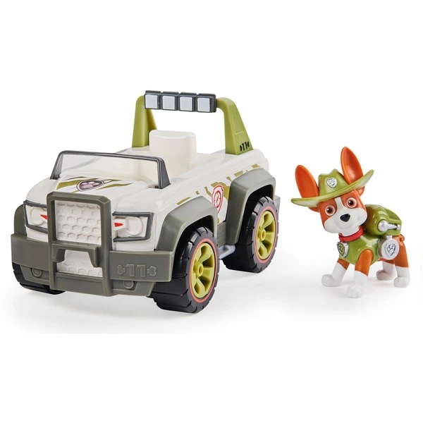 Tracker von der Paw Patrol wartet in seinem Dschungel-Cruiser startklar auf den nächsten actiongeladenen Einsatz. Wenn Hilfe benötigt wird, kommt Tracker (Figur enthalten) auf den Fahrersitz und bricht auf funktionsfähigen rollenden Rädern zur Rettungsmission auf. Die authentischen Details und die realistische Ausstattung des beliebten Paw Patrol Dschungel-Hundes und seines Geländefahrzeugs lassen die spannende Paw Patrol lebendig werden. Das Spiel mit Tracker und seinem Dschungel-Cruiser regt die kindliche Fantasie zu Rettungsmissionen an, bei denen es um Freundschaft, Teamarbeit und Mut geht. Zusammen mit den anderen Hunden und ihren Rettungsfahrzeugen (jeweils einzeln erhältlich) kann Tracker mit seinem Dschungel-Cruiser die Welt in Adventure Bay noch besser retten!Art.-Nr.: 1760627